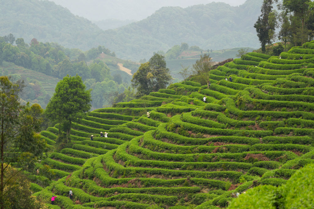 4月5日,东说念主们在四川省雅安市牛碾坪万亩不雅光茶园体验采茶。新华社记者 胥冰洁 摄