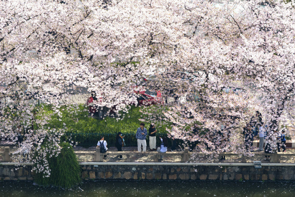 4月5日,东说念主们在江苏省常熟市的护城河边赏花(无东说念主机相片)。新华社发(杨素平摄)
