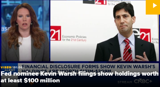 新败露的财务讲述文献透露,好意思联储主席候选东说念主凯文・沃什的金钱远超历任好意思联储主席。