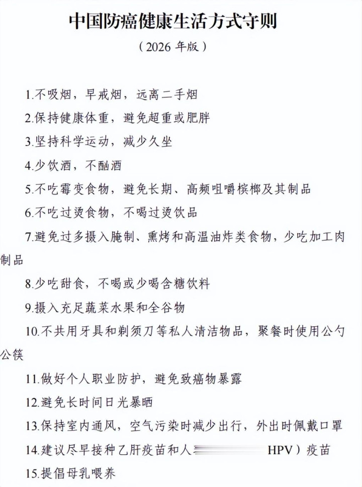 最近,国度卫生健康委厚爱发布了《中国防癌健康生涯容颜守则》——它不是晦涩难解的医学论文,也不是张大其词的养生噱头,而是一册东谈主东谈主能看懂、照着作念就能责骂患癌风险的“官方防癌讲明书”。15条防癌法例,覆盖生涯方方面面,许多东谈主第一条就没作念到。