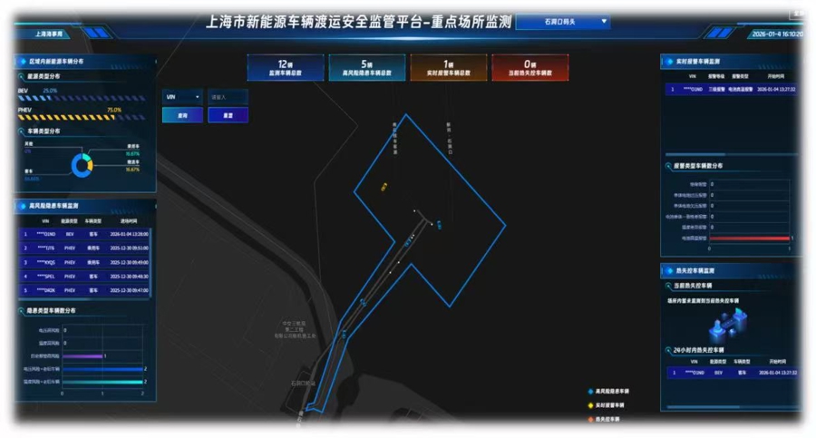 对此,作为全国首个新能源车辆水上渡运智慧监管平台,上海海事局与上海市数据局联合打造的“E-car平安渡”车客渡载运新能源车辆智能化监管平台,在宝山石洞口车客渡码头全面发力,以“高效化、便民化、数字化”为核心,大幅缩短车辆进站排队时间,实现新能源车辆渡运风险从“未知”到“可知、可测、可控”的关键跨越。