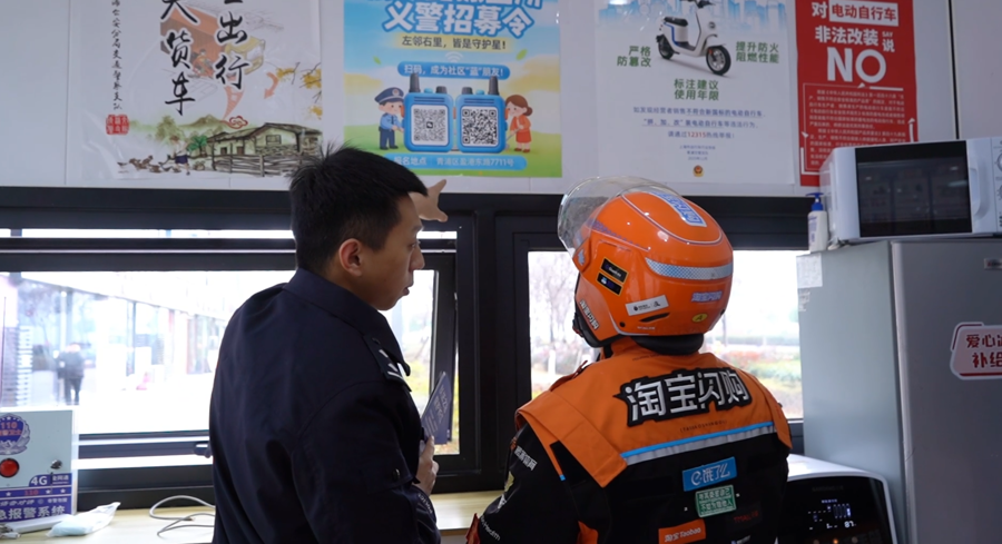 崧润路派出所辖区的宝龙商圈是集轨说念交通、买卖办公于一体的区域买卖中心,亦然青浦新城客流量最大的商圈,日均外卖订单超1.6万单,岑岭时可达2.4万单。骑手盛大合股曾一度导致泊车繁杂、通行拥挤、纠纷频发,成为辖区治理的杰出贫穷。派出所坚捏问题导向,推动治理从“单一照顾”向“服务交融”转型。