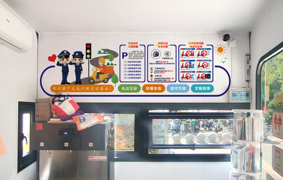 开首,崧润路派出所联动交管、城管等部门,在崧雅路等路段科学规矩80个外卖骑手专用泊车位,配套符号指挥,初步模范泊车规律,造成了“巷新驿站”1.0版块。在此基础上,派出所进一步聚焦骑手“休息难、充电难、就餐难”等推行需求,推动驿站从功能单一的泊车区向详尽服务体升级。