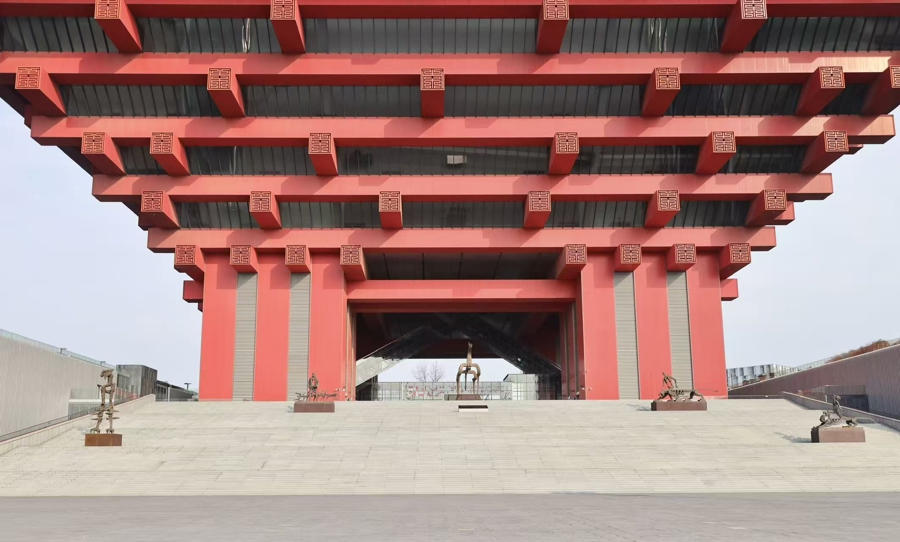 上海美术馆两处公共广场的“山河巨丽”以开阔的视觉节奏与凝练的象征造型,引导观众步入“天地之间”。取自商周青铜夔龙纹饰的雕塑作品《龙马》则神采飞扬,为观者注入新一年的精神动能。