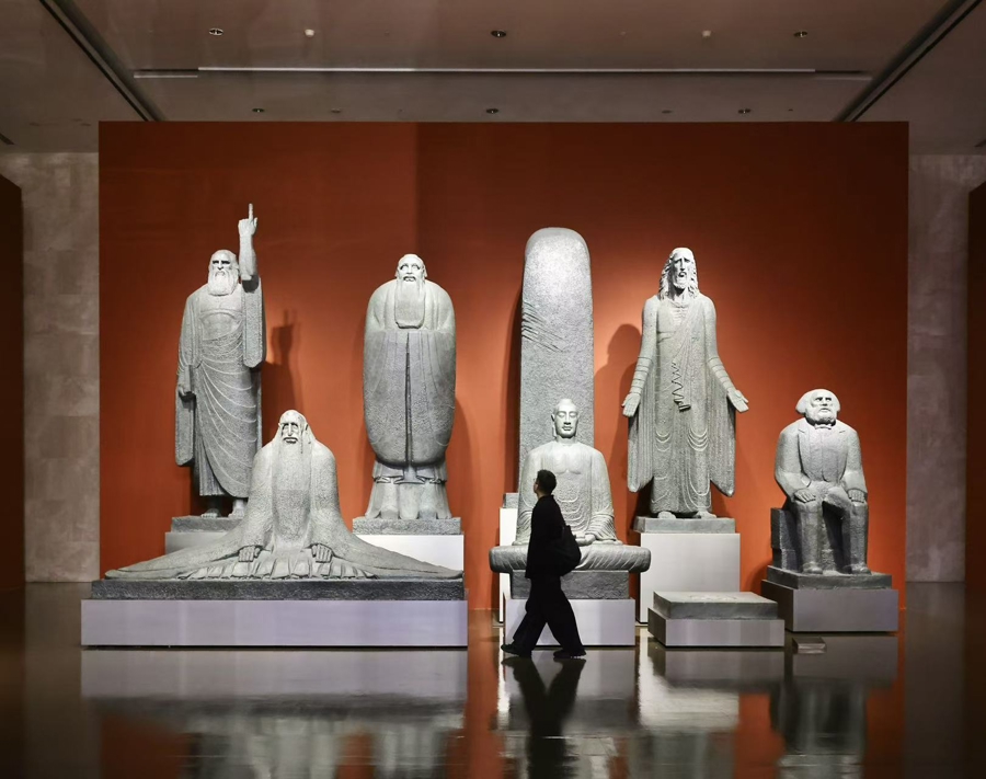“雕塑的价值在于户外。”上海市美术家协会主席、中国雕塑学会会长、上海美术学院院长曾成钢这样定义雕塑。今天,上海美术馆(中华艺术宫)户外广场迎来全新艺术景观,高逾9米的《剧神之柱》、充满视觉张力的《精神不倒》……一组巨型雕塑构成了恢宏现场。“天地间·曾成钢雕塑作品展”在上海美术馆(中华艺术宫)开幕,展览汇聚曾成钢四十载创作生涯的130余件代表作品,为迄今规模最完整、体系最全面的曾成钢艺术展。展览不仅是对艺术家创作生涯的深情回顾,也反映着中国现代雕塑在构建东方审美体系过程中的重要历程。