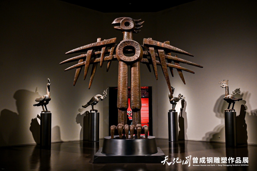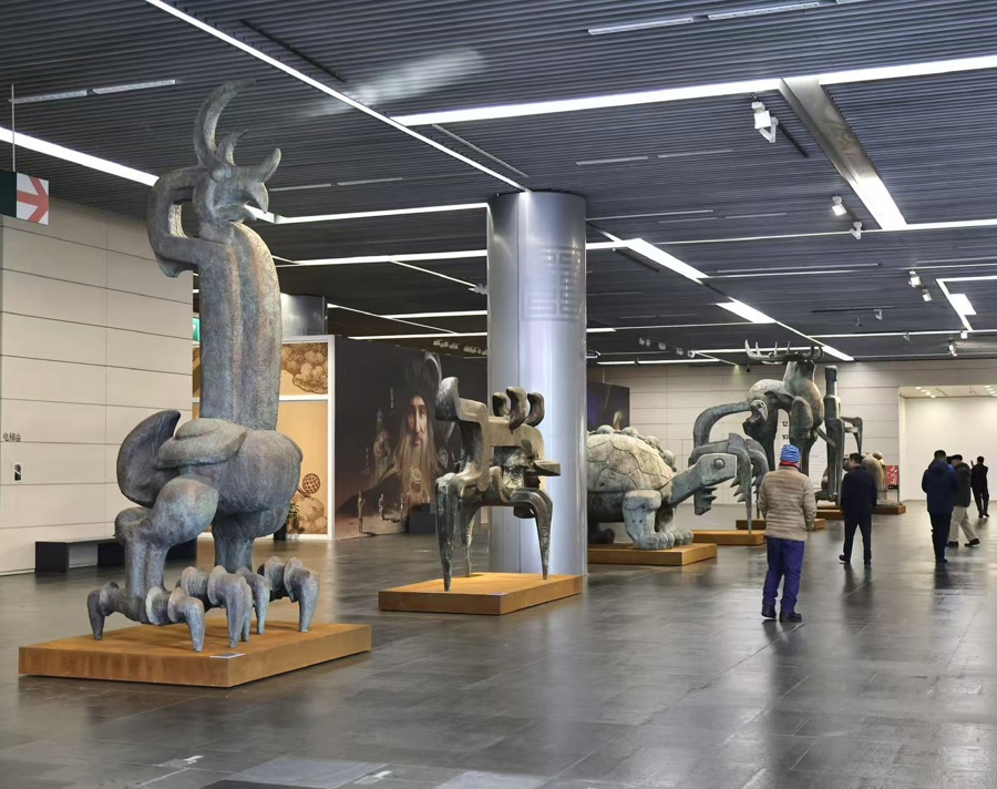 展览作品融汇现代造型语言,将传统青铜的厚重、浩瀚自然的生机、中国神话的象征与纪念碑的庄严熔铸为一体,于曾成钢而言,对传统理解得愈深,文化的底蕴就愈厚,艺术创新的可能性便愈广阔。“天地间”展览,以“山河巨丽”“生命意象”“历史回响”“天地精神”四个篇章为脉络,由个体生命延展至民族历史,层层推进。
