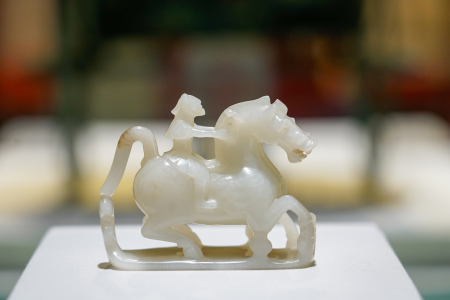 马,自古便是融贯华夏文明脉络的重要伙伴与精神象征。此次展览分为“鞍马征尘”“昭陵六骏”“骏影流光”“诗情画意”等板块,重点文物包括与“马踏飞燕”同出于武威雷台汉墓的青铜车马、汉代圆雕白玉仙人奔马、出自吐谷浑墓葬的唐代骑马击鼓俑、徐悲鸿《饮马图》与张大千《临曹霸玉花骢图》等,年代跨度从汉代一直到近现代,展现中华马文化的多元内涵与吉祥寓意。