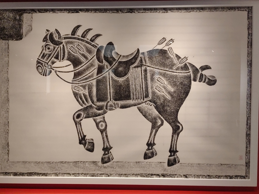 “每年生肖展,我们都希望能把馆藏里一些平时不太露面的文物拿出来,再去向其他博物馆借几件精品一起展示。”褚馨记得,每年生肖展都会有一两件冷门展品受到全国观众喜爱,成为爆款,比如兔年时因“丑萌”出圈的唐代白釉兔等。此次展出的石刻昭陵六骏拓本也是首次从库房中请出,在上博文保中心经过一个月的重新装裱才得以露面。石刻昭陵六骏被后世公认为唐代石刻艺术的典范,20世纪初,“飒露紫”和“拳毛䯄”被地方军阀移走,后经古董商贩卢芹斋转手流往海外,现藏于美国宾夕法尼亚大学博物馆,另外四件现藏于西安碑林博物馆。此次展出的昭陵六骏拓印藏于上海博物馆,全套6幅,拓本上钤有“长安李氏拓古印记”,堪称近代拓工技艺与文物传承的重要见证。