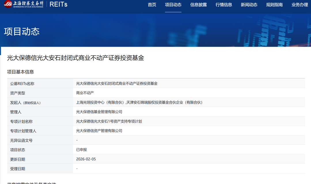 佳成网配资近日,据上交所官网显现,光大保德信光大安石紧闭式买卖不动产证券投资基金进展讲演。此前,2026 年 1 月 30 日,米牛配资光大嘉宝股份有限公司公告,公司召开第十一届董事会第三十四次(临时)会议,审议通过在管基金开展买卖不动产公募 REITs 讲演发左右命议案。