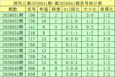 佳禾资本开奖转头:陈设三第2026041期奖号开出:639,组选类型:组六,大小比为2:1,奇偶比为2:1,和值为18,跨度为6。